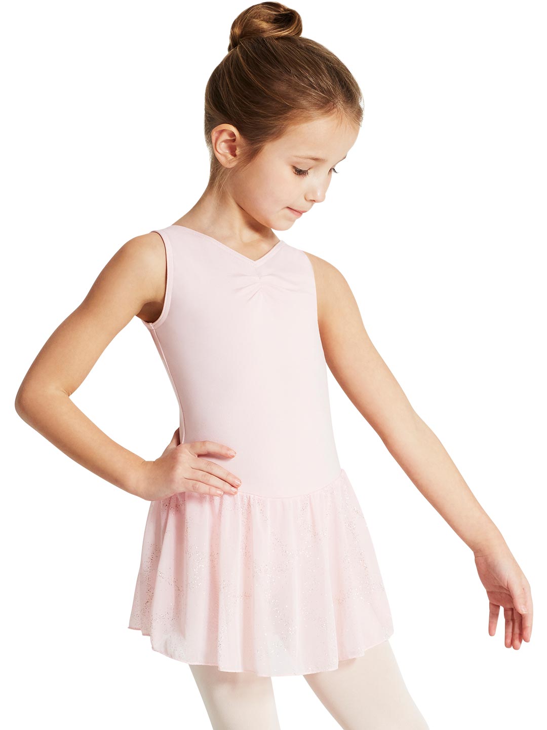 Star studded dreams are inspired by the Pinch Front Tank Dress. This dress features full front lining, pinched front V-neck and scoop back. Flowy skirt will add a little extra flair to every turn. Rising dancers will shine in this number.