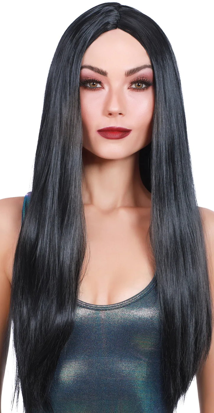 This long straight black wig has an adjustable elastic closure which gives the look and feel of natural hair, allowing you to completely transform on Halloween… or any other night of the year!