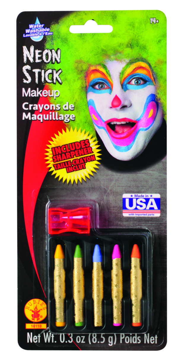 18118 NEON PENCIL *11 Date: April 18, 2026 $6.99 9 in stock 18118 NEON PENCIL *11 quantity Add to cart Buy with SKU: 3482 Category: MAKEUP (MAKEUP) Description Description 5 Count Neon Makeup Crayons Perfect for adding the finishing touched on any costume Not just for Halloween, these can be used anytime you need Related products MICROFINE GLITTER *11 $10.99 Select options This product has multiple variants. The options may be chosen on the product page BUCKET O BLOOD *11 $2.29 Add to cart 191 MAKEUP REMOVER *44 $10.99 Add to cart 400 CREAM STICK (1025) $13.99 – $14.99Price range: $13.99 through $14.99 Select options This product has multiple variants. The options may be chosen on the product page