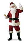 - Deluxe Ultra Velvet Santa Suit features a lined jacked with hidden zipper front and faux fur trim, lined pants with pockets for holding candy canes, and a matching hat