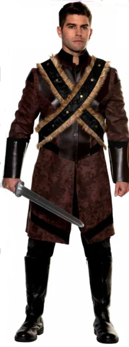 This costume includes a faux suede and vinyl tunic with faux fur trimmed straps, providing both style and comfort as you conquer any battle.