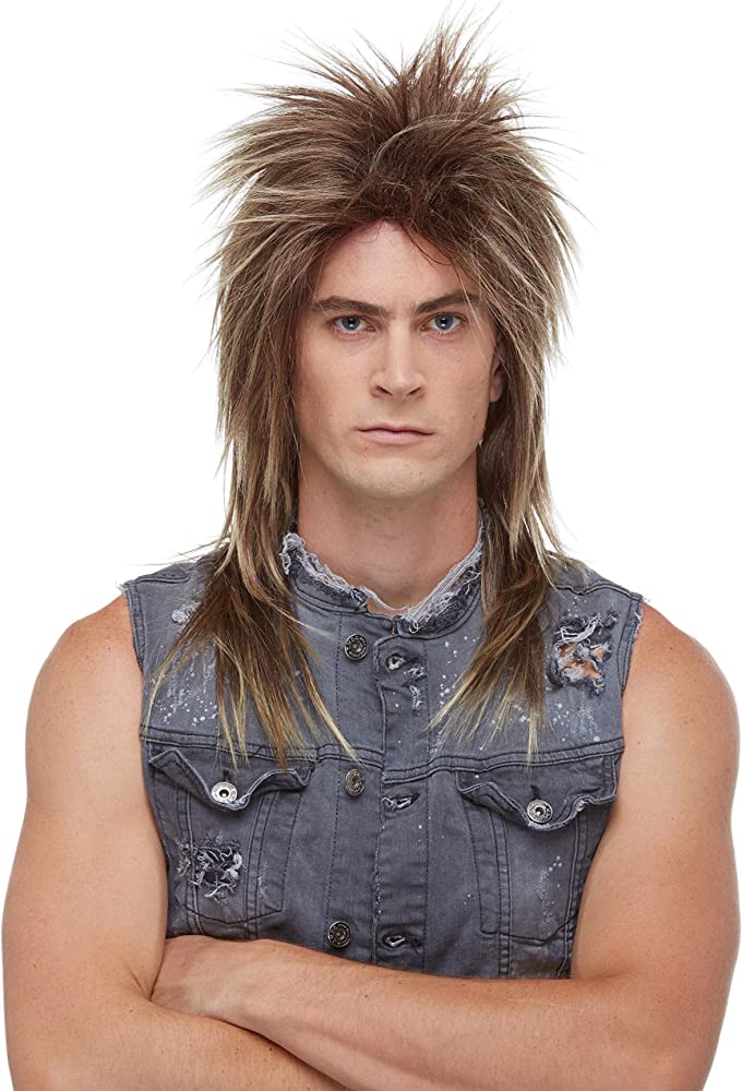High Quality Mixed Frosted Brown Rocker Adult Wig. 80's inspired rock star look wig