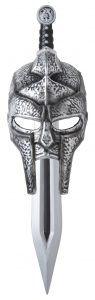 Listen to the cheers of the coliseum. The Gladiator Mask and Sword kit comes with a child sized half mask and sword.
