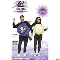 Two costumes in one package! Here's the newest craze, Pickleball, in a couples costume! Includes one Paddle apron, and one inflatable Ball apron. Both have adjustable straps for a custom fit.