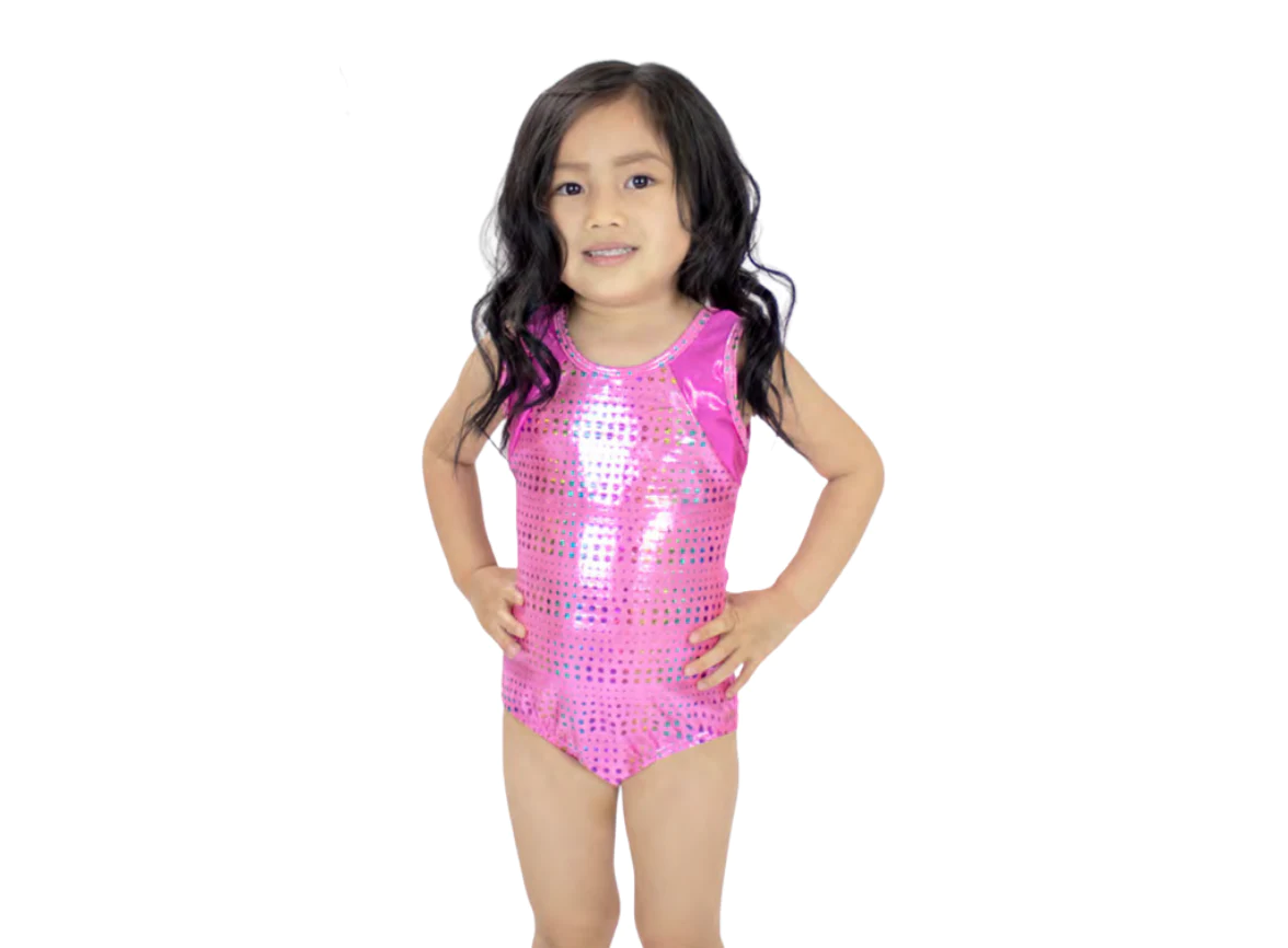 Pink Rainbow Dot Gym Suit, a pink pattern that is sure to be totally eye catching as you bust some moves!