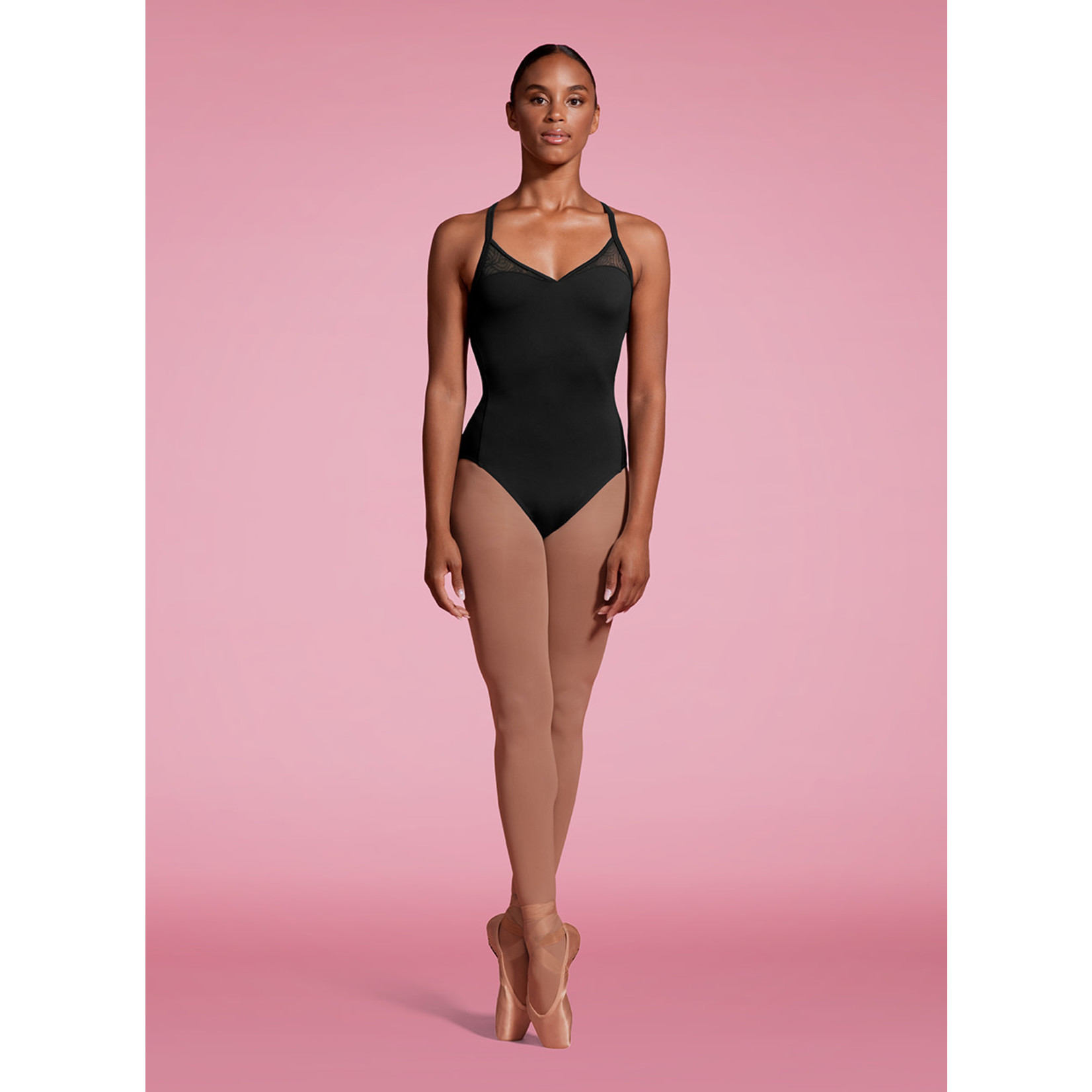 Our ladies Mirella Seville cross back leotard features a V neckline with an open cross back design and mesh front and back panels. Part of the Ladies Mirella Seville collection, a classically elegant collection featuring patterned stretch lace in a trio of colours that delivers a dose of effortless sophistication.