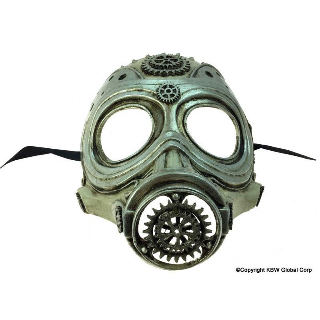 This Silver Steampunk Gas Mask features detailed gear accents and a bold respirator design One Size Fits Most. Perfect for Halloween, cosplay, or post-apocalyptic themed events. A striking mix of industrial grit and sci-fi style.