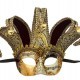 Elevate your masquerade style with this Black Gold Venetian Jester Half Mask adorned with gleaming bells and musical scroll detailing. Ideal for Mardi Gras, carnivals, or theatrical events, it offers a luxurious and festive touch. Its intricate gold trim and bold jester shape command attention at any celebration.