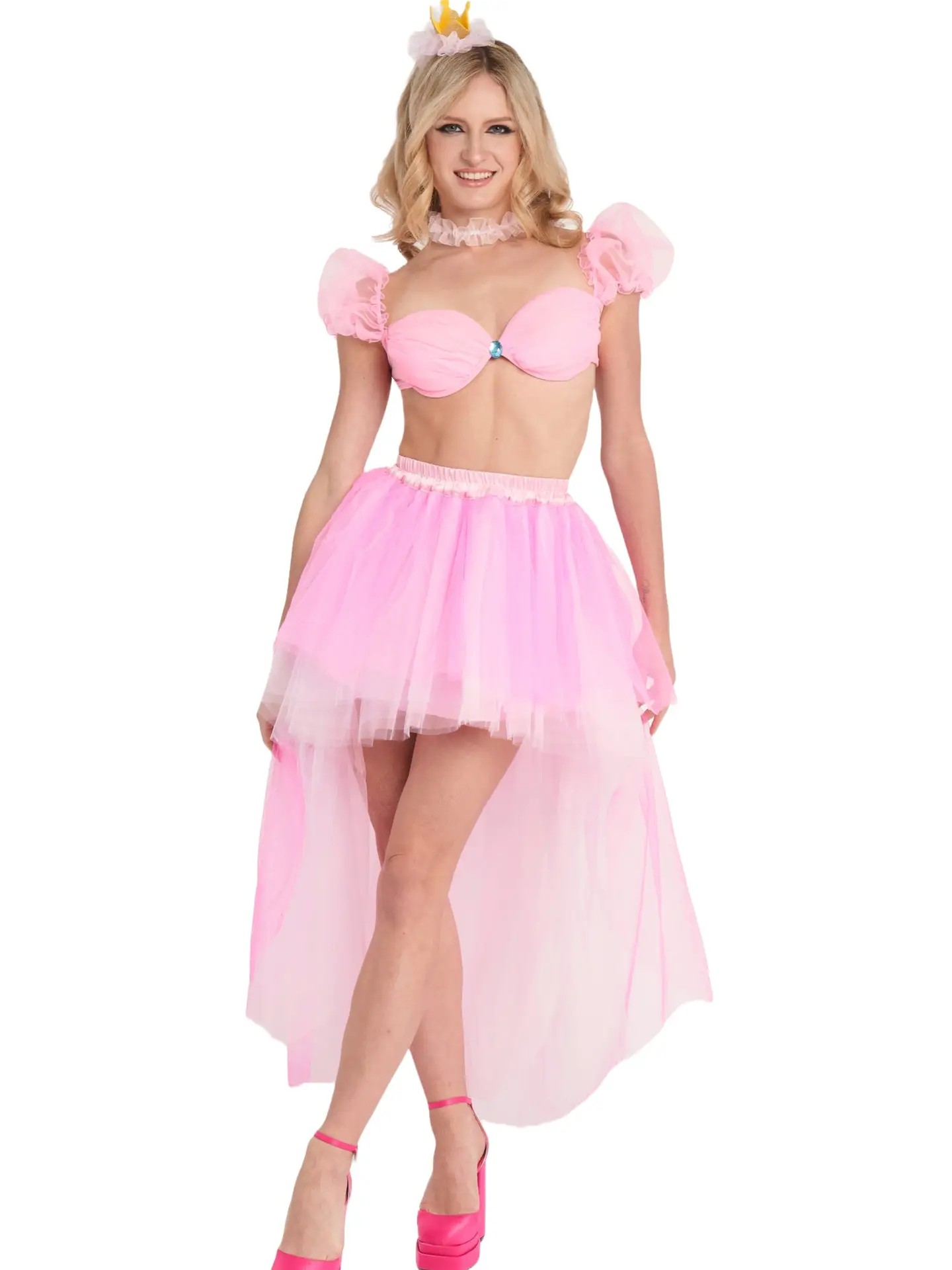 Features – The top features sheer puffy sleeves with attached jewel in the center, and sewn with elastic band to easily fit anyone of size 0 to size 4; High-low multi-layered tutu for dramatic effect. The tutu is made with multiple layer of chiffon to create a dramatic effect. The high-low style is designed for easy mobility.